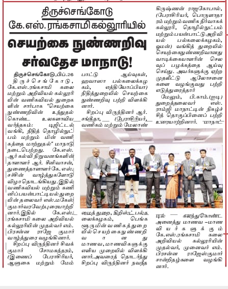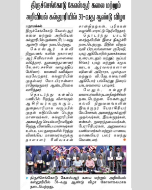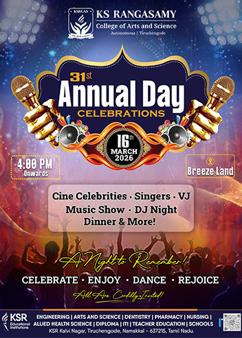 K.S. Rangasamy College of Arts and Science strives to provide quality education by imparting discipline, value, knowledge and skills. We provide a vast array of courses in Life Sciences, Humanities and Management Studies with Co-curricular activities to enhance the soft skills of the students and created an excellent learning environment with positive support and direction for the growth of our students.
