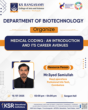K.S. Rangasamy College of Arts and Science strives to provide quality education by imparting discipline, value, knowledge and skills. We provide a vast array of courses in Life Sciences, Humanities and Management Studies with Co-curricular activities to enhance the soft skills of the students and created an excellent learning environment with positive support and direction for the growth of our students.The College is known for its academic excellence and character building, providing learner-centred education with high integrity, ethics, professional and societal commitments.