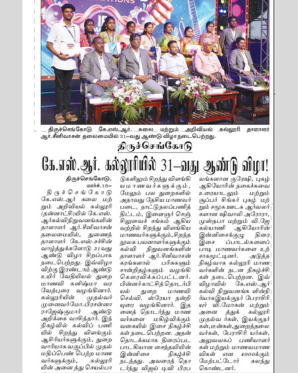 K.S. Rangasamy College of Arts and Science strives to provide quality education by imparting discipline, value, knowledge and skills. We provide a vast array of courses in Life Sciences, Humanities and Management Studies with Co-curricular activities to enhance the soft skills of the students and created an excellent learning environment with positive support and direction for the growth of our students.